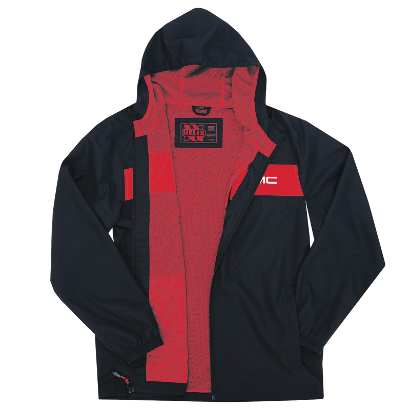 *100% Polyester ripstop shell *Wind & water resistant *100% Polyester mesh lining *Two lower exterior pockets *Fixed, adjustable hood *Elasticized cuffs *YKK® center front zipper *Regular fit